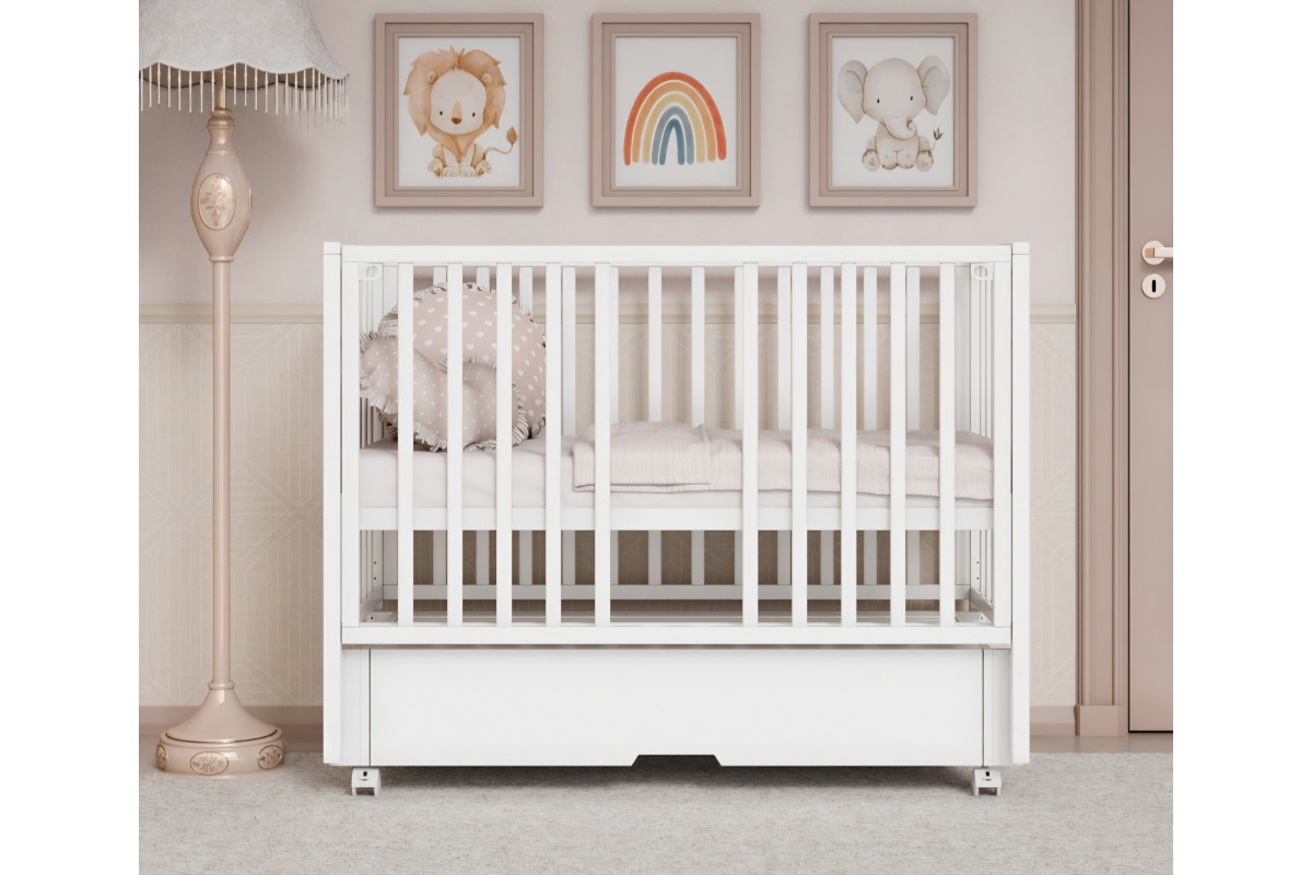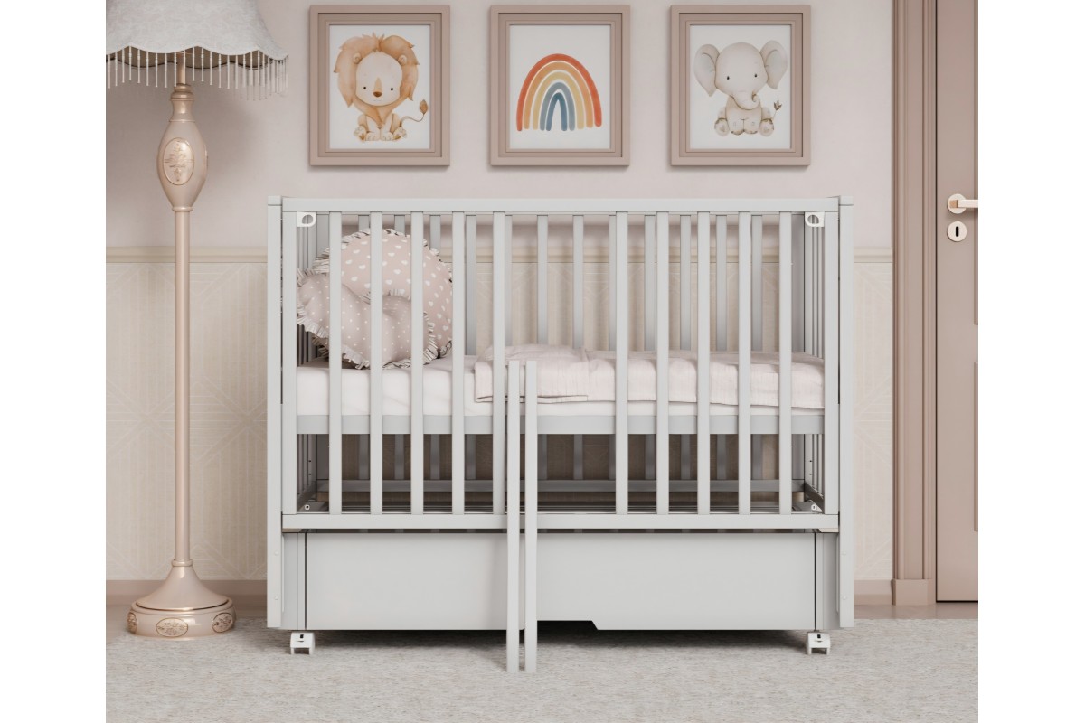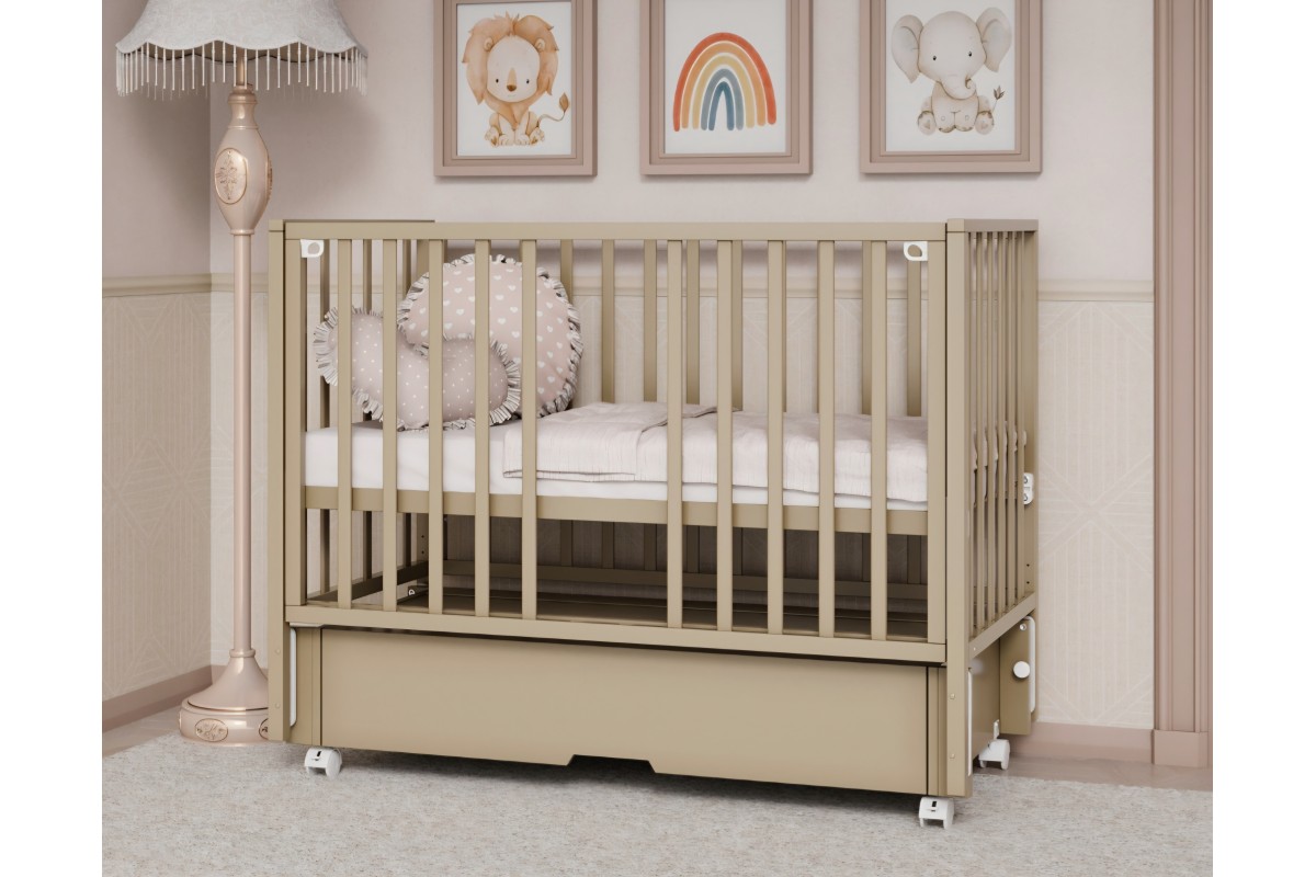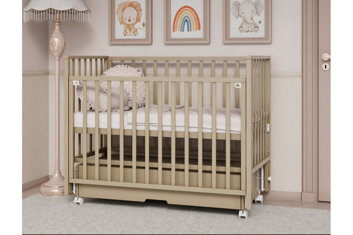 Мобильность кроватки обеспечивают плавные колесики, позволяющие без усилий перемещать ее по комнате. Выполненная из безопасных и прочных материалов, кроватка Крона сочетает практичность с изысканным дизайном, гармонично дополняя любой интерьер детской.