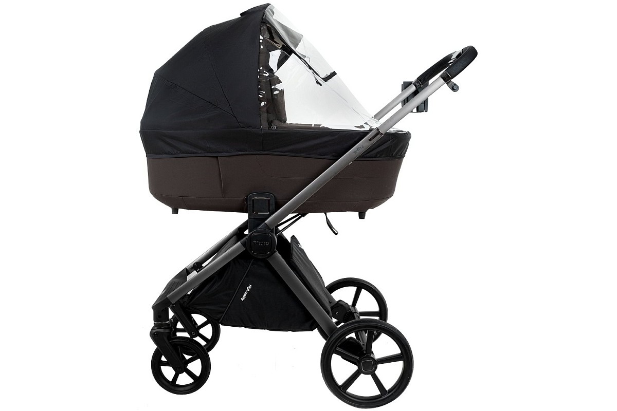 Корпус люльки изготовлен из плотного многослойного текстиля, обладает водоотталкивающим эффектом и защитой от ультрафиолетовых лучей spf 50.
