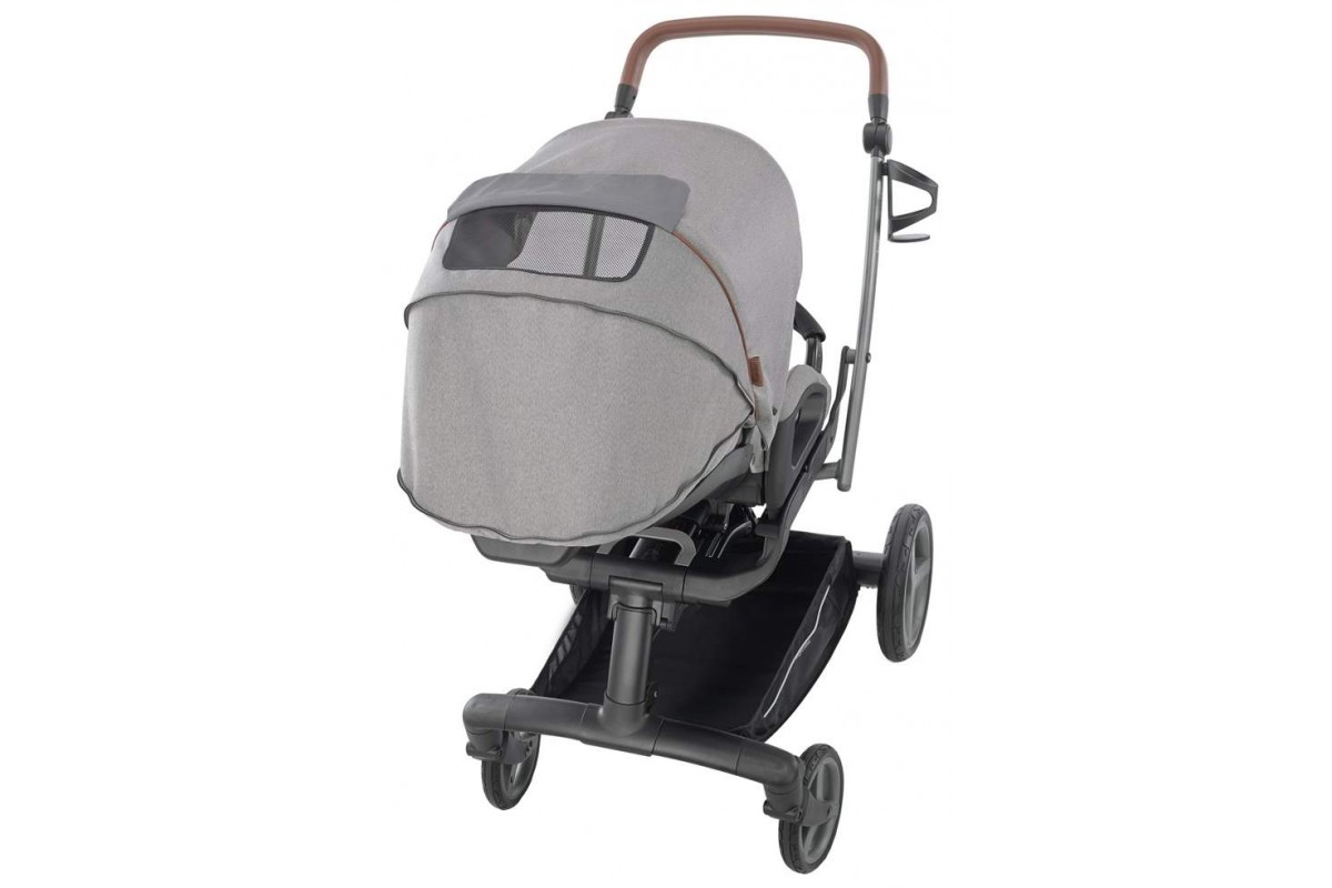 • Вставка из «дышащей» сетки в капюшоне позволяет усилить циркуляцию воздуха вокруг сиденья прогулочного блока, а также открывает дополнительный обзор на ребенка