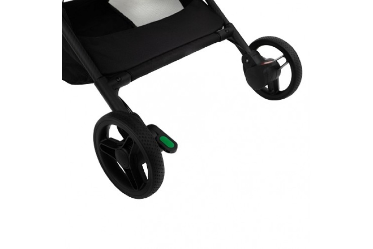 Несмотря на легкий вес благодаря карбоновой раме, эта модель имеет мягкую и приятную амортизацию на всех колесах. Прочные покрышки не боятся проколов и легко проедут по проблемным участкам в городе. Кроме того, между задних колес отсутствует перекладина, что позволяет с комфортом гулять людям даже с очень широким шагом, никогда не придется подстраивать свою подходку под коляску, чтобы не задевать её при ходьбе.