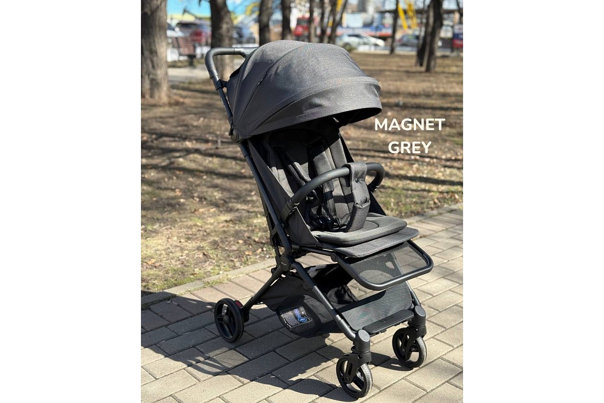 Зафиксируйте ребенка в коляске при помощи удобных пятиточечных ремней с мягкими накладками. Замок позволяет быстро пристегнуть пассажира – он магнитный и автоматически фиксирует ремешки. Для удобства крохи предусмотрен откидной бампер, покрытый экокожей. В качестве дополнительной защиты выступает межпаховая перемычка, которая крепится к бамперу при помощи кнопки.